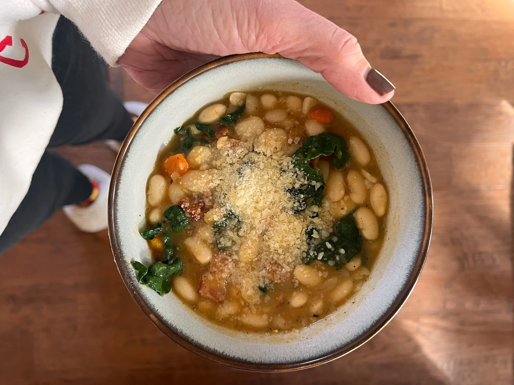 Simmer over medium or medium-low heat for 45mins - 1hr or until beans are soft. Add additional chicken stock as needed.